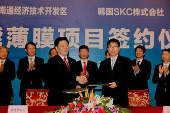 經過多輪考察洽談,SKC與SK中國公司、東洋鋁業、伊藤忠塑料、伊藤忠金屬等決定在南通共同投資SKC功能薄膜項目。韓國SKC株式會社是世界500強企業SK集團旗下最大的高端材料制造企業,也是全球最大的TFT-LCD用光學薄膜廠家。該項目的建成將成為南通光電和新能源產業鏈中的重要一環,對當地調整優化產業結構具有重要意義。
