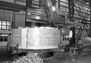 中航黎明錦化機公司在消化引進技術和自主開發的基礎上,實現了百萬噸PTA石化重大裝備國產化,并在大型石化項目上推廣應用。圖為該公司依靠高度自動化和智能化的裝備,加工PTA/CTA大型干燥機重點部件。