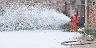消防官兵噴灑泡沫,防止化學液體起火爆炸