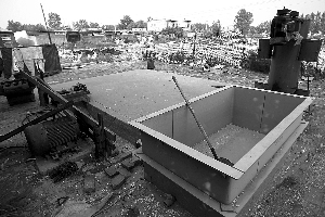 8月3日,文安縣大留鎮(zhèn),以往用于“水粉”廢舊塑料的設備已經被拆除(上圖)。一名婦女正在冷清的“料場”內分揀廢舊塑料(下圖)。