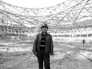 蔡玉波在鳥巢工地留影
