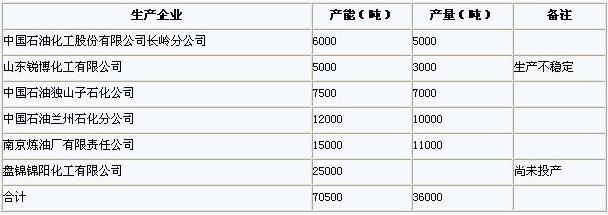 目前國內偏三甲苯生產企業及產能產量