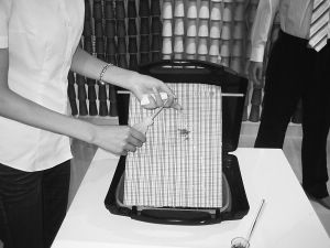 近日在魯泰紡織集團看到一款神奇的自清潔面料:當面料上被涂抹上果醬等污物時(圖1),只需要用清水沖洗(圖2),污物就會輕松“逃離”面料表面,還面料以清潔(圖3),同時面料自身的服用性不受任何影響(圖4)。據了解,此款面料是魯泰與瑞士科萊恩合作開發,仿照荷葉表面具有的微米、納米雙重結構特點和超疏水、疏油性質,是經過特殊整理的純棉織物,水珠可在表面自由滾動,具備與荷葉相似的自清潔效應。用該面料制作的服裝,摒棄了傳統手洗、機洗的繁瑣過程,只需清水沖淋即可恢復如新。