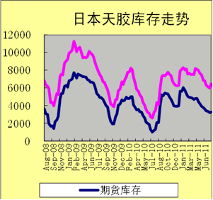 日膠上周走勢略微呈現(xiàn)探底回升的態(tài)勢,主力1月合約周一最低下探350日元,之后獲得支撐緩慢回升,并連續(xù)收出四連陽,雖然周五小幅回落,報(bào)收359.1日元,但周度波動(dòng)仍上漲7.2日元或2.04%,技術(shù)上已經(jīng)完成年內(nèi)三次考驗(yàn)350日元的支撐,均獲得了較強(qiáng)的抵抗,市場認(rèn)可度逐漸提高。但近兩周日膠維持在350-360的窄幅區(qū)間弱勢震蕩,市場也缺乏明顯的做多動(dòng)能,因此,350日元的支撐位檢驗(yàn)難言結(jié)束。從信息面看,上周市場最大的沖擊是穆迪下調(diào)日本信用評級,但從日膠的表現(xiàn)看,幾乎沒有受到太多影響,市場關(guān)注重點(diǎn)并不在此。而周五日本首相菅直人正式宣布辭職,同樣沒有引發(fā)日本金融市場的波動(dòng),看來日膠對政治的敏感度弱化。但基本面近期也沒有太明顯變化,消費(fèi)依舊改善不大,而供應(yīng)也沒有形成明顯的壓力,泰國北部持續(xù)的降雨似乎也影響有限。綜合來看,日膠近期仍然缺乏方向指引,震蕩格局還難言結(jié)束。