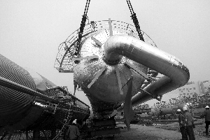 圖為日前在國泰公司建設工地上,年產(chǎn)10萬噸醋酸丁酯項目大型設備一次吊裝成功,項目建設順利轉入設備安裝階段。