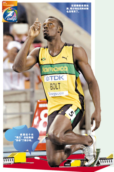 本報韓國大邱8月29日電(特派記者許蓓)在大邱田徑世錦賽男子100米決賽中,因搶跑而被取消參賽資格的牙買加飛人博爾特今日通過大賽組委會發(fā)表了一份官方聲明,他表示自己還將全力參加男子200米和男子4×100米接力的比賽。