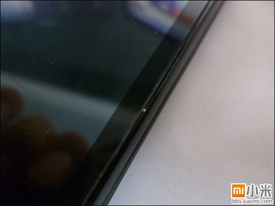 ukkku工程機號碼為618,他指出小米手機最大問題是掉漆,另外左側縫隙有點大,玩游戲時手指按壓屏幕時會明顯聽到咯吱咯吱聲音。此外,手機最左上角按壓時,明顯感覺沒做嚴,雖然可以壓下一點點,但還會彈起來。此外,攝像頭還進灰。