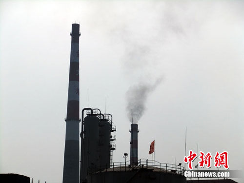 “金大地”排出的煙。村民們說,這種煙還是輕的,有時金大地排出黑煙遮天避日。