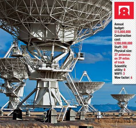 甚大望遠鏡陣列是世界上最大的望遠鏡之一,由27個單獨的射電天線構成,每一個的直徑達到82英尺(約合25米)。甚大望遠鏡可以拍攝月球等近地天體或者遠至可觀測的宇宙邊緣的天體細節豐富的圖像。