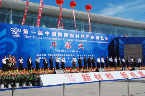 6日上午,第一屆中國國際新材料產業博覽會在哈爾濱國際會展中心拉開帷幕。中共中央政治局委員、國務院副總理張德江宣布開幕。省委書記吉炳軒等出席開幕式。省長王憲魁,工業和信息化部部長苗圩分別致辭。工業和信息化部副部長蘇波主持開幕式。