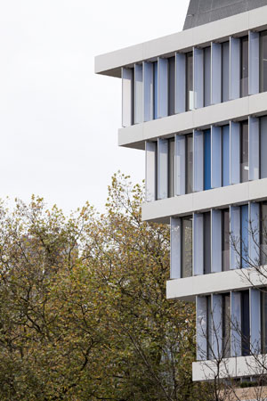 威斯敏斯特城市學院是一所知名的繼續教育學院,為學生提供200多門職業和學術課程,其新教學樓獨特的懸挑式設計由schmidt hammer lassen建筑事務所的設計師完成,旨在最大限度地降低能耗和碳排放。該大樓的可持續性體現在東西兩側的窗戶上都安裝由Colt公司生產的垂直遮陽板,該遮陽板使用定制顏色的半透明Lexan ExellD板材。