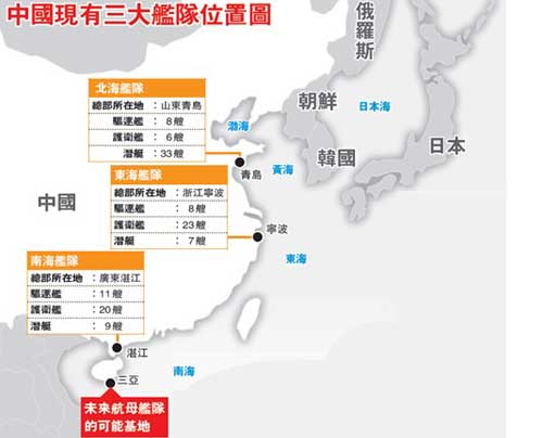 中國三大艦隊分布圖