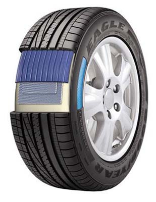 作為一種高強度、輕質量的新興材料,碳纖維已經被廣泛應用于賽車和航空領域。最近,全球輪胎科技領導者固特異宣布已將碳纖維科技運用到民用輪胎產品中。2011年5月,領先配備了ResponsEdgeTM技術的固特異Eagle輪胎已經在北美面世。這項名為ResponsEdgeTM的最新輪胎技術,通過在輪胎胎側內加入碳纖維,增強了胎側強度,一方面,提高了輪胎的操控靈敏性;另一方面,避免了輪胎在惡劣道路狀況下行駛時胎側受損,增強了安全性能。