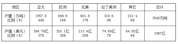 2011年全球涂料地區(qū)銷售