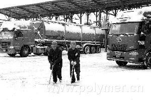 11月12日以來(lái),吉林省普降暴雪,但是前來(lái)吉林石化染料廠購(gòu)買(mǎi)苯酚產(chǎn)品的車(chē)輛依然絡(luò)繹不絕。該廠全力組織滿負(fù)荷生產(chǎn)。截至11月14日,下雪的3天時(shí)間里,銷(xiāo)售苯酚產(chǎn)品654噸,較好地滿足了客戶需求。圖為11月14日早,該廠員工邊裝車(chē),邊清理裝卸站臺(tái)的積雪,為用戶創(chuàng)造良好的裝車(chē)環(huán)境。