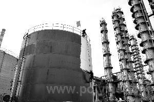 日前,滄州煉化煉油一部702輕污油灌改造工程接近尾聲。改造后的輕污油罐采用內浮頂式結構,罐頂充氮氣。該罐改造后將大大提高安全系數。 圖為施工人員正在做罐體外部防銹刷漆處理。