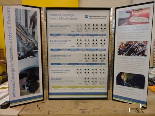 圖為 PPG 工業應用于汽車和工業行業的緊固件涂料產品展示板