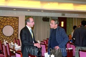在10月25日召開的2012中國(常熟)國際氟化工論壇上,杜邦、蘇威、阿科瑪、大金、吳羽等國際氟化工巨頭的代表們介紹了國外氟化工新產品的開發動態。 圖為阿科瑪研發人員正在與中方代表探討技術問題。