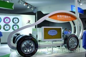 普利司通攜其先進理念和最新科技成果高調亮相11月23日~12月2日舉行的2012第十屆中國(廣州)國際汽車展覽會。 本次普利司通參展主題為“綠色創新,多彩未來”,展臺分為“可信賴的”、“經濟的”、“未來的”三大板塊,集中展示旗下安全環保主力商品和面向未來的前沿科技。在“未來”主題區域,打破傳統輪胎理念的非充氣輪胎、采用新型輪胎印刷技術的彩色輪胎格外引人注目。圖為該公司展出的彩色輪胎及輪胎印刷技術。