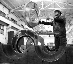圖為員工正在精心組裝密煉機(jī)耐磨環(huán)