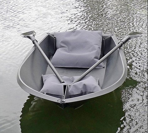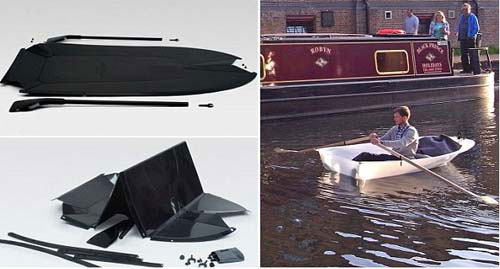 創(chuàng)造者阿諾表示,它本質(zhì)上只是一張預(yù)折疊過(guò)的硬塑料片,打包之后只是一個(gè)150厘米×60厘米的扁平包裹,可以展開后用三根鉚釘固定,變成一艘長(zhǎng)達(dá)2.5米單人小船。