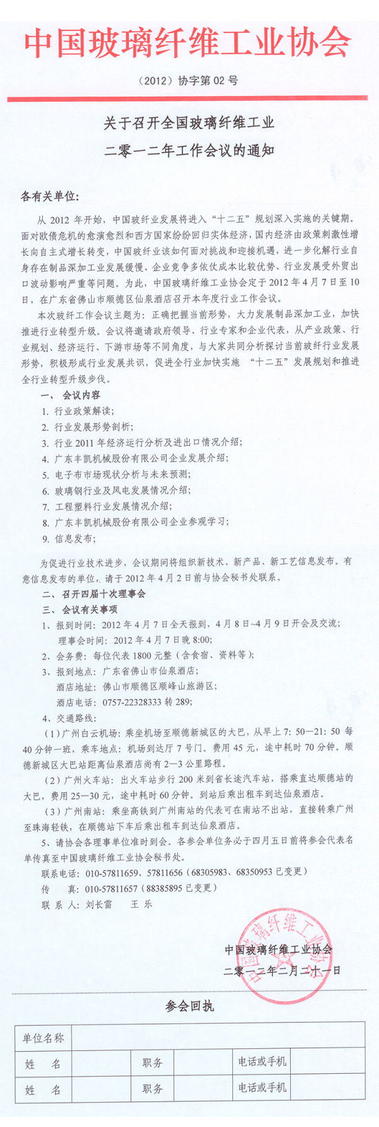 關于召開全國玻璃纖維工業二零一二年工作會議的通知