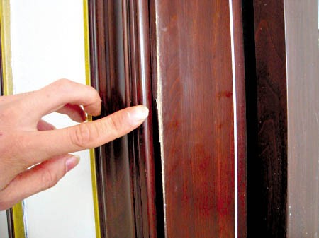 李先生購買的新房于2001年6月份開始裝修,眼看著裝修工程即將竣工,去年11月份他在笏石鎮一裝材商店訂了4個套裝門,總價格為5000多元。去年12月份,商家派人送貨上門并進行安裝。沒想到不到半個月后,4個門均有油漆脫落現象,而且在門框與門扇交接處還出現了不同程度的裂縫。“房子才裝修好,門也才安上不久,我們全家目前還沒有入住新房,怎么會出現這種情況呢?”李先生告訴記者,于是,他趕緊打電話向商家反映情況。“商家也到我家新房看了門的現狀,沒想到他們說門一安裝上就沒有商店的事,他們上門看看只是出于友情……”商家的說法讓李先生很氣憤。