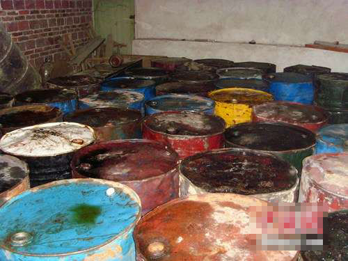 資料圖:圖為已裝桶待售的地溝油。