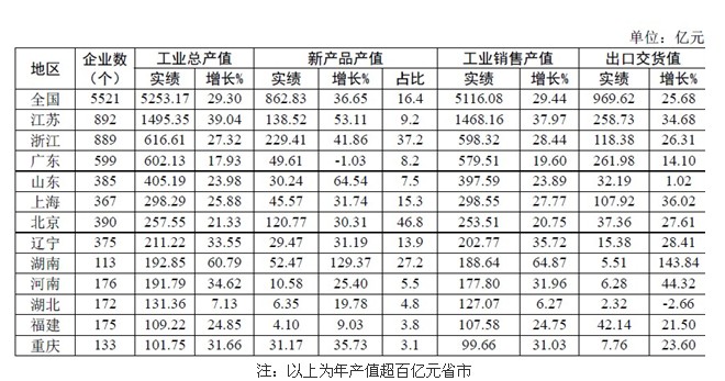 在省市同行業(yè)中的產業(yè)競爭力水平改革開放三十多年來,浙江省儀器儀表有了較快發(fā)展,已形成特色鮮明、具有相當技術基礎和經濟規(guī)模的產業(yè)。總體技術與國際水平尚有相當差距,自動化控制系統(tǒng)、激光氣體分析系統(tǒng)、部分自動化儀表和光學儀器具有全國先進水平。電能表和水表則具有全國規(guī)模優(yōu)勢。在全國儀器儀表經濟總量各省市排名中,浙江省由最早時第十八位到改革開放前的第七位,新世紀開始上升至第三位,2010年又上升至第二位(見2010年主要經濟指標各省市排名表)。從表中新產品產值一欄中也可以看出,我省新產品產值的絕對值(229.41億元)在排名前十的省市中最高,我省儀器儀表行業(yè)的新產品產值占總產值的比例(41.86%)在排名前五名的省市中,占比最高,且最近幾年的增長幅度也高于其他省市。這在一定程度上表明我省儀器儀表行業(yè)在新品開發(fā)和技術進步方面取得了實質性的進展,企業(yè)轉型升級的步伐正在加快,在行業(yè)中的競爭優(yōu)勢更加突出。但結構性、素質性矛盾較大,與經濟總量居首位的江蘇省相比,江蘇儀器儀表企業(yè)只比浙江多3家,而工業(yè)總產值、工業(yè)銷售產值、出口交貨值都比浙江高一倍以上。根據前兩年資料,在企業(yè)銷售規(guī)模、利潤規(guī)模、人均銷售收入、利潤率等,我們與江蘇、北京、上海都也有較大差距。
