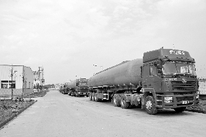 3月25日,江西全球化工股份有限公司自籌資金2.5億元建設的江西省重點精細化工項目——年產6萬噸環氧氯丙烷一期工程連續試運行一個月,批量生產的產品各項指標均達合格,并開始銷往廣東、安徽、浙江等地,深受用戶好評。圖為滿載環氧氯丙烷產品的車輛整裝待發。