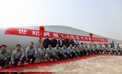 3月26日,在德州世紀(jì)威能風(fēng)電設(shè)備有限公司全體研發(fā)、設(shè)計(jì)人員的共同努力和國(guó)內(nèi)知名科研院校的鼎立支持下,經(jīng)過(guò)兩年多的艱苦奮戰(zhàn),具備完全自主知識(shí)產(chǎn)權(quán)的1.5MW竹纖維風(fēng)電葉片終于研發(fā)成功,并將馬上啟運(yùn)至風(fēng)電場(chǎng)進(jìn)行實(shí)際掛機(jī)運(yùn)轉(zhuǎn)發(fā)電。