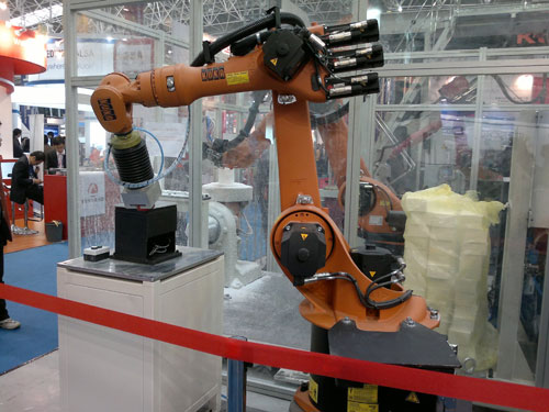 庫卡KR 16-2機器人在CIE 2012現(xiàn)場演示打磨技藝