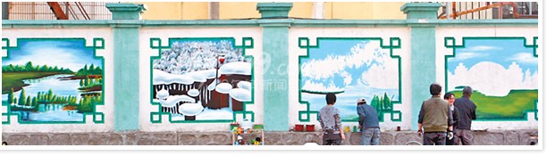 在創作現場,索菲亞教堂美景的“教堂鐘聲”以及“松江濕地”、“雪打紅燈”、“太陽島上”基本創作完畢。現場的畫家告訴記者,4名畫家用時5個小時創作了4幅墻畫。創作墻畫使用的環保涂料丙烯涂料,不怕雨水、也不怕太陽曬,可以使環保墻畫保存更長久。