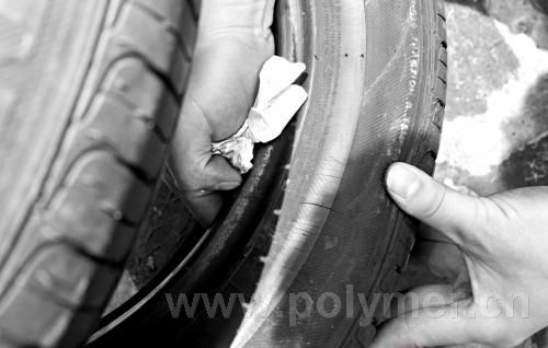 錢先生去年1月24日在位于蘊川路的上海上汽安吉汽車銷售服務有限公司購買了一輛裝有韓泰輪胎的大眾途安轎車。記者了解到,在行駛過程中轎車的前兩輪曾出現過意外情況。“去年五六月份的時候右前輪稍微擦了下路肩,造成一條很小的裂縫”,錢先生說,“左前輪則在八九月份時扎到了個釘子,被我補了一下。”