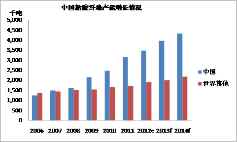近年來,粘膠纖維(主要是粘膠短纖)的產能在下游需求的刺激下得到了飛速的發展,目前產能已占世界粘膠纖維產能的65%。其發展正在復制滌綸纖維發展的模式。