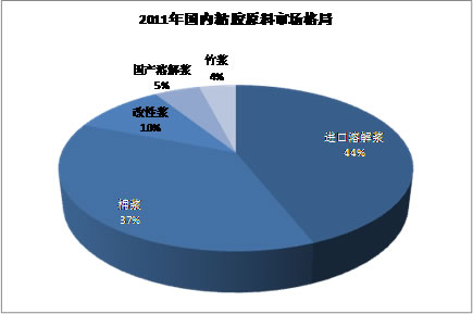 目前,仍處于起步階段的國內溶解漿的產能有了一定的增加。但其主要原材料-木片,由于國內木材資源的缺乏,主要依靠進口,所以成本較高,且由于木片來源不穩定,導致生產出來的溶解漿質量變動相對較大。如果要國內溶解漿行業得以穩定健康的發展,必須先解決原料問題,而這個問題,又不是一蹴而就可以解決的。