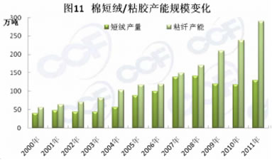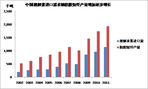 中國在很長一段時間內主要使用棉漿粕作為生產粘膠纖維的原料,一個重要的歷史原因是國內木材資源很難分配到粘膠纖維生產上,而棉漿粕的原材料棉短絨是棉花加工的副產品,一度曾作為廢料丟棄或作為燃料燒掉,其在棉漿粕的應用可謂變廢為寶。但隨著粘膠纖維產能的增長,棉短絨的供應無法跟上(主要由于棉短絨只是棉花產業的副產品,其供應量和質量隨棉花生產情況變化),而且棉漿粕由于自身生產對環境造成的污染,也無法穩定正常開工,造成其開工率一直維持低位的局面。
