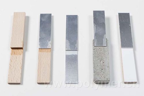 對木材與鋁的粘接物進行拉伸剪切強度測試:其中所使用的膠粘劑是采用新型GENIOSIL XB粘結劑配制而成的。總部位于德國慕尼黑市的瓦克化學集團研制的這種新型雜化聚合物可用于配制高強度結構膠。配制出來的膠粘劑不含異氰酸酯,無溶劑,無需界面劑便可牢固粘結于木材、玻璃、金屬或陶瓷等表面。