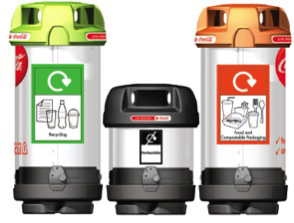 所有堆肥材料將被貼上橙色的回收標志。可回收材料將有一個綠色的符號來區將他們從非循環再造和堆肥廢物區分出來,然后把這些標識放在奧運場館周邊相應的垃圾桶。