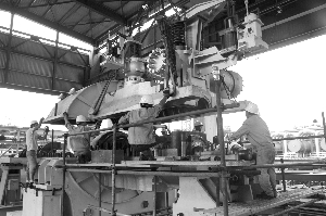 圖為乙烯裝置三機組K501機組汽輪機上定子正在安裝