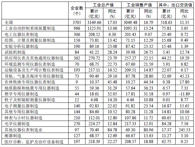 全年預計:如宏觀經濟無突發性重大波動,儀器儀表行業今年主要經濟指標可以達到年初預期目標: