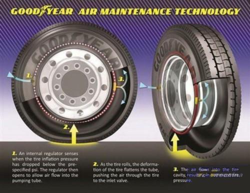 在這項最新技術中,固特異輪胎公司排除了“外部輪胎壓力介入”的需要,除了介入性充氣的困難性,維護保養充氣輪胎是節約燃料和輪胎壽命的關鍵性因素,例如:對于輪胎每損失10磅/平方英寸,每加侖英里行駛數將是輪胎壓力損失1%。