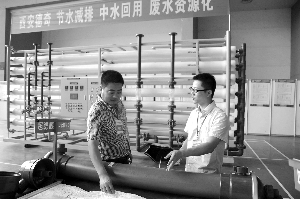 圖為8月31日在西安舉辦的第二屆中國歐亞國際戰略性新興產業博覽會上,該公司技術人員向客戶介紹中空纖維膜。