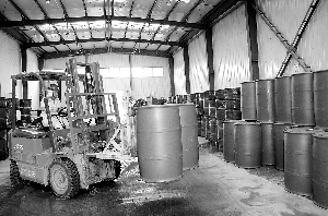 截至9月底,陜西延長石油精細(xì)化工科技有限公司銷售油品添加劑、煉油助劑等各類產(chǎn)品5500多噸,實現(xiàn)銷售收入6000余萬元。該公司精細(xì)化工產(chǎn)品種類多,汽柴油清凈劑年產(chǎn)能在6000噸,油田、煉油助劑年產(chǎn)能在5000噸,7月又建成年產(chǎn)5萬噸潤滑油、潤滑脂生產(chǎn)裝置。 圖為油品添加劑包裝下線。