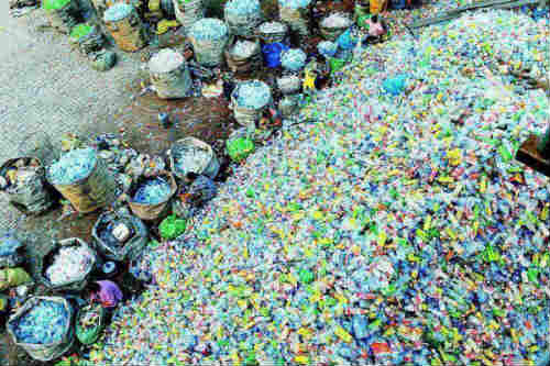 西安市幸福路一家飲料瓶回收場,工人在分揀堆成“山”的塑料瓶子。據統計,西安市每年約5億的塑料瓶,大部分通過這種方式被回收。廢舊塑料瓶的回收和充分再利用,發展塑料循環經濟,不僅有效減輕社會環境負擔,節約資源,也是實現塑料產業可持續發展的有效途徑。隨著國家對環境保護的日益重視,也為塑料瓶的回收利用和再生產創造了良好的社會環境。