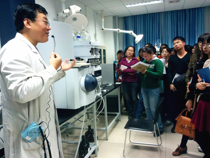 近日,藥學院學術文化促進會在藥學院儀器測試中心舉辦了儀器培訓活動。藥學院的2013級碩士研究生40余人走進了本學院的儀器測試中心,與本學院的各種儀器和設備進行“親密接觸”。在儀器設備中心指導老師晉興華老師的細心講解下,學生們對于紫外分光光度計、紅外分光光譜儀、元素分析儀、氣相色譜儀、高效液相色譜儀、自動旋光光譜儀、液質聯用色譜儀、噴霧干燥儀等儀器操作和工作站應用的有了更深層的認識。晉興華講解時,學生們也針對儀器操作過程中遇到的疑難問題與老師討論,大家互相交流心得體會,對于大型實驗室建設和專業培訓流程等相關涉及領域也有了更多的了解。