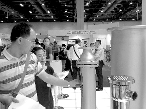 在5月13~16日于北京舉辦的第九屆阿赫瑪亞洲展上,山東豪邁機(jī)械制造有限公司展示了其最新研發(fā)的螺旋纏繞式換熱器。換熱器內(nèi)部的螺旋纏繞管結(jié)構(gòu)完全消除了換熱管與管板間的拉脫力,大大延長了使用壽命。同等換熱量下,該設(shè)備體積約為傳統(tǒng)換熱器的1/10。 圖為觀眾在仔細(xì)察看螺旋換熱器的內(nèi)部結(jié)構(gòu)。