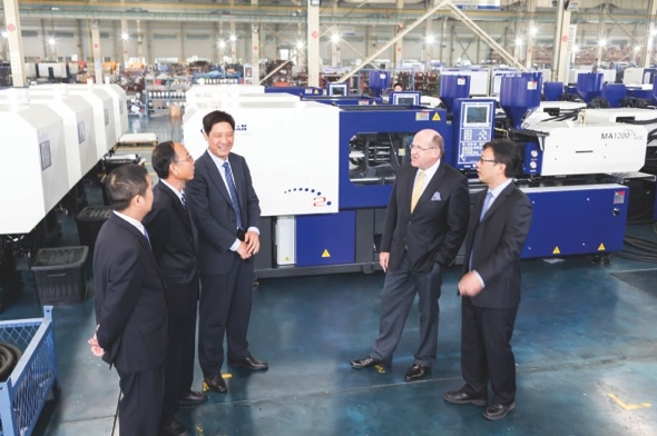 Franz教授(右二)與負責出口的海天華遠機械制造有限公司管理層討論技術的高效技術