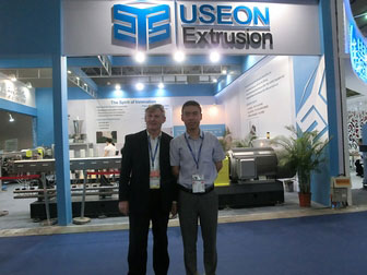 南京越升擠出機械有限公司張海軍副總經理(右)與歐洲分公司銷售總監Glyn Dooley