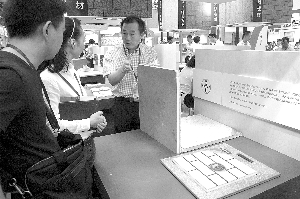 8月15日,在上海新國際博覽中心開幕的中國國際綠色建筑建材博覽會上,萬華、巴斯夫、拜耳、亨斯曼等9家中外企業,在200平方米的一號展位,集中向客戶展示節能與安全并重的創新型建筑解決方案與產品。中國聚氨酯工業協會副秘書長李建波表示,隨著國家不斷提高建筑節能標準,以及有關部門建筑安全防火政策的逐步落地,去年以來聚氨酯保溫材料工業復蘇步伐加快,目前全國開工的聚氨酯保溫復合板材生產線已超過200條,達到歷史最好水平。圖為李建波(右)在一號展位向觀眾介紹聚氨酯復合板材特性。